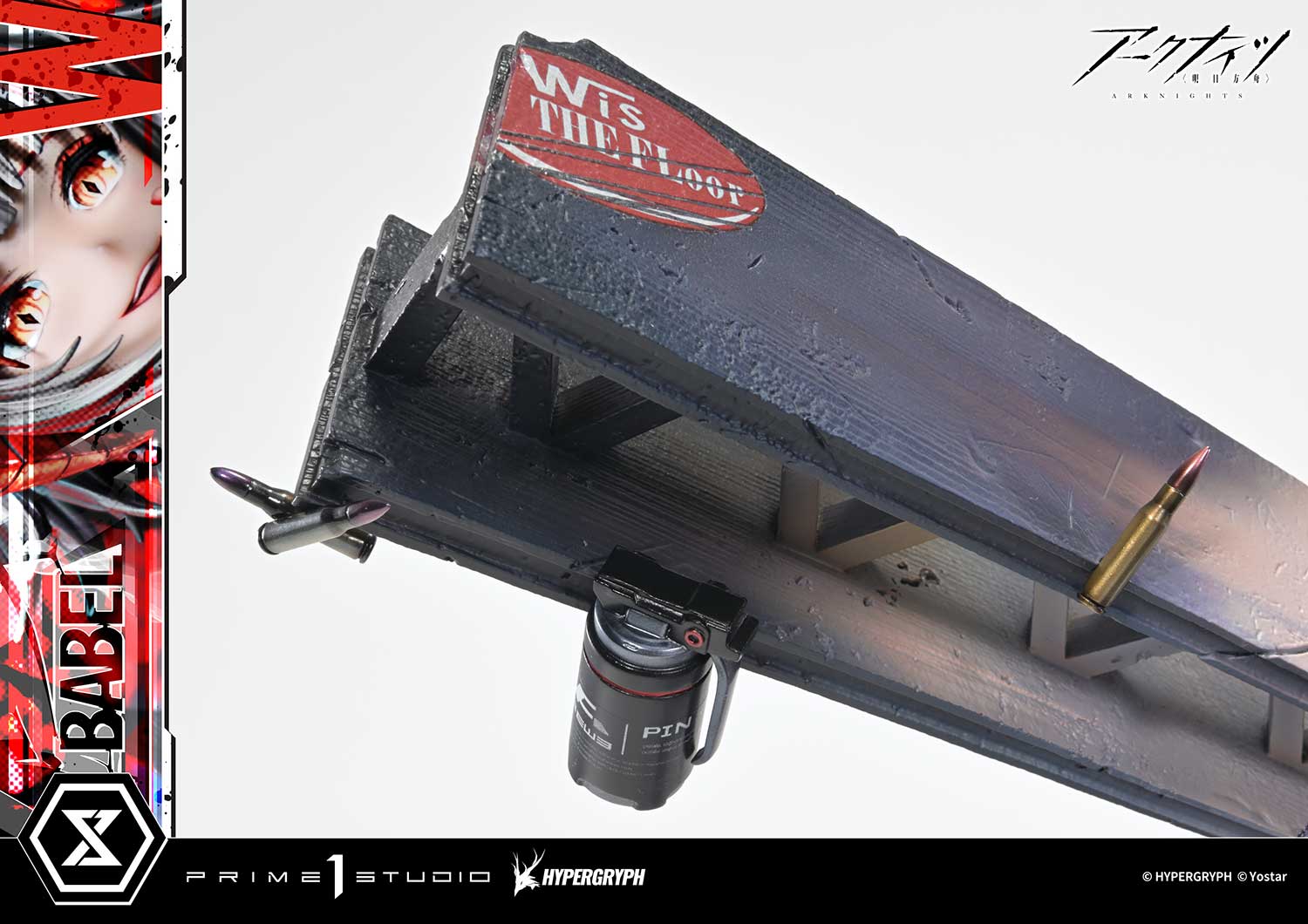 The explosive backdrop has been artfully arranged to deliver maximum impact while remaining ideal for display. Layers of textured and gradated smoke recreate the swelling air and lingering shock of the blast, while the stylized steel beams add a bold visual rhythm. Grenades and bombs reminiscent of her tactical arsenal complete the composition, forming a vivid image of destruction frozen in motion.