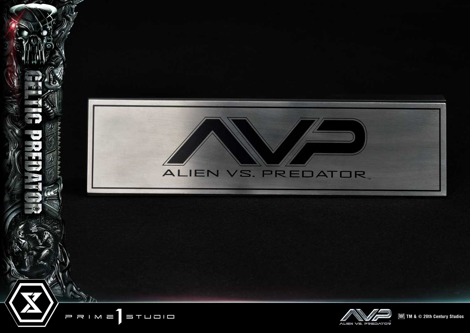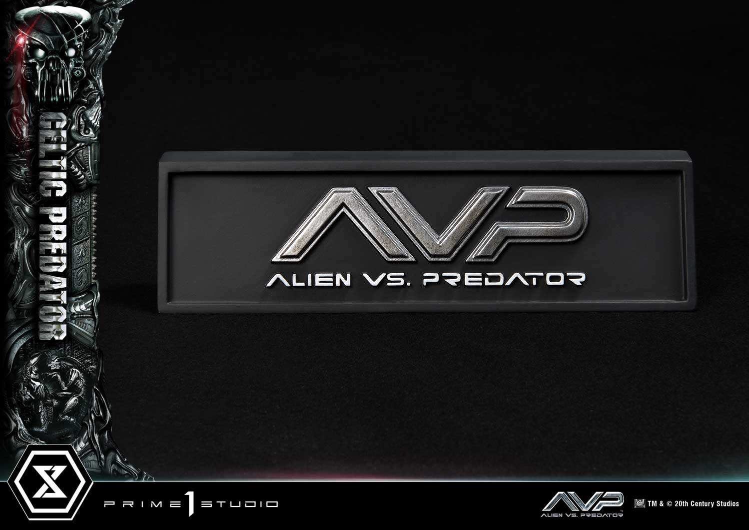 As you have seen with the announcement of the first brother of the trio, we continue to strive for excellence at Prime 1 Studio. For the second brother, the incredible artists have no reason to hold back and have once again left no stone unturned in bringing the ruthless Celtic – the oldest and biggest of the three. At over 37 inches tall, Celtic is distinguishable by his nightmarish Bio-Mask, which was molded around his mandibles. Like the rest of the hunting party, he, too, is fully geared from head to toe, equipped with an arsenal of advanced technology and deadly weaponry. Both fists can be clenched or open, additionally the right hand can be displayed holding the Combistick, a spear-like weapon that serves to impale its victims from a distance whereas the gauntlet-integrated Wristblade, in its retracted state is designed for close-quarter combat, allowing him to slice through flesh and bone with brutal efficiency. Swappable parts allow the Wristblades and the Combistick allow you to display the blades at different lengths of extension and states. The base features corpses and bones of fallen enemies accompanied by two, silver and black “AVP” logo plates to display at the statue's base.