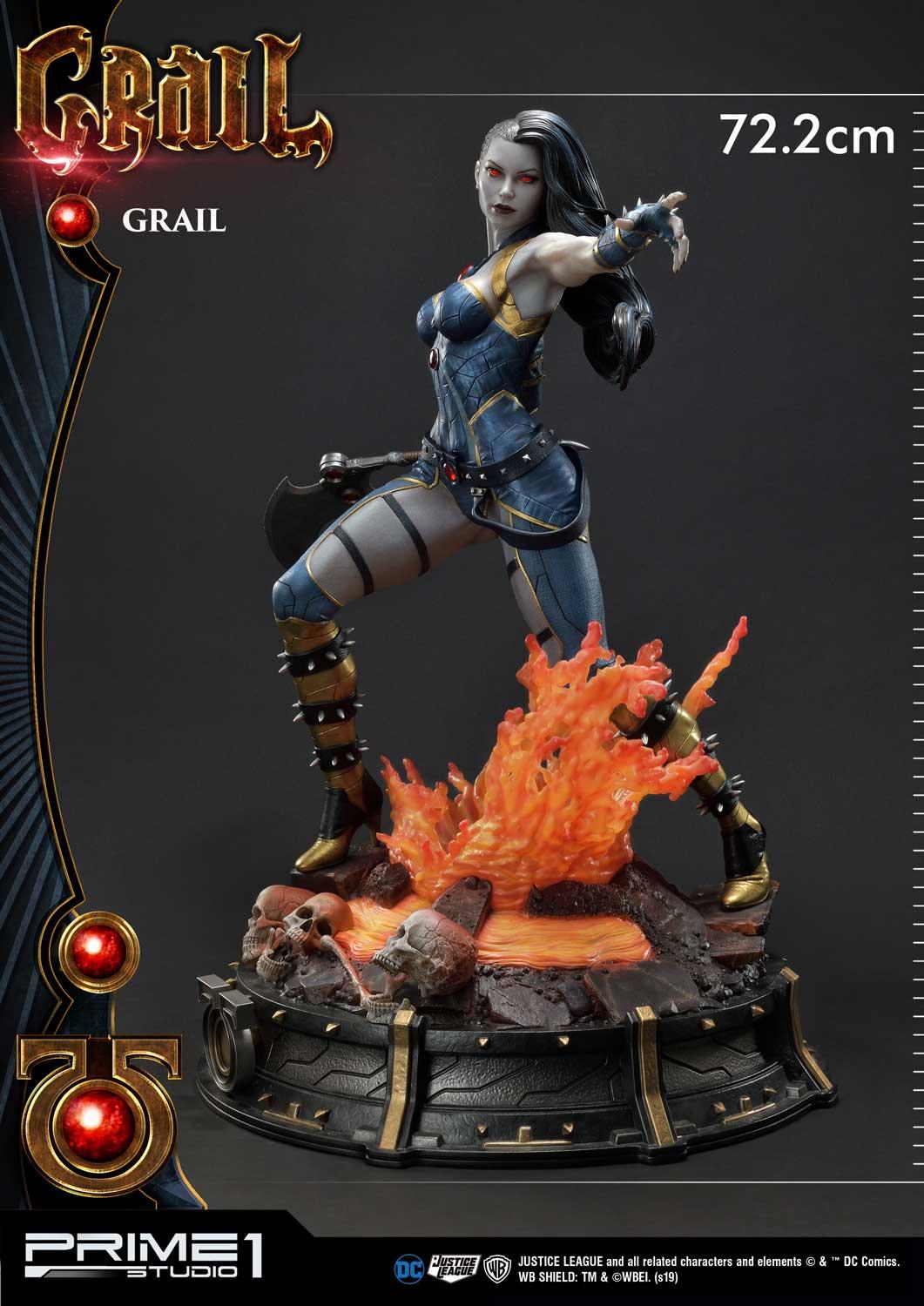 Grail is the daughter of Darkseid and Myrina, prophesied to cause great destruction at the behest of the Anti-God. It is a faithfully reproduced piece with a high attention to details. The base is decorated with fire and skulls which reminds of hell.