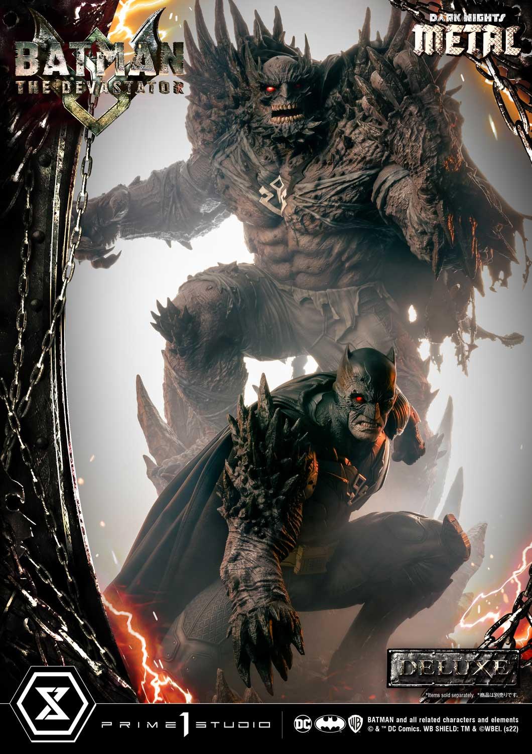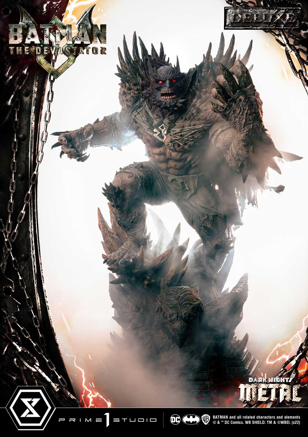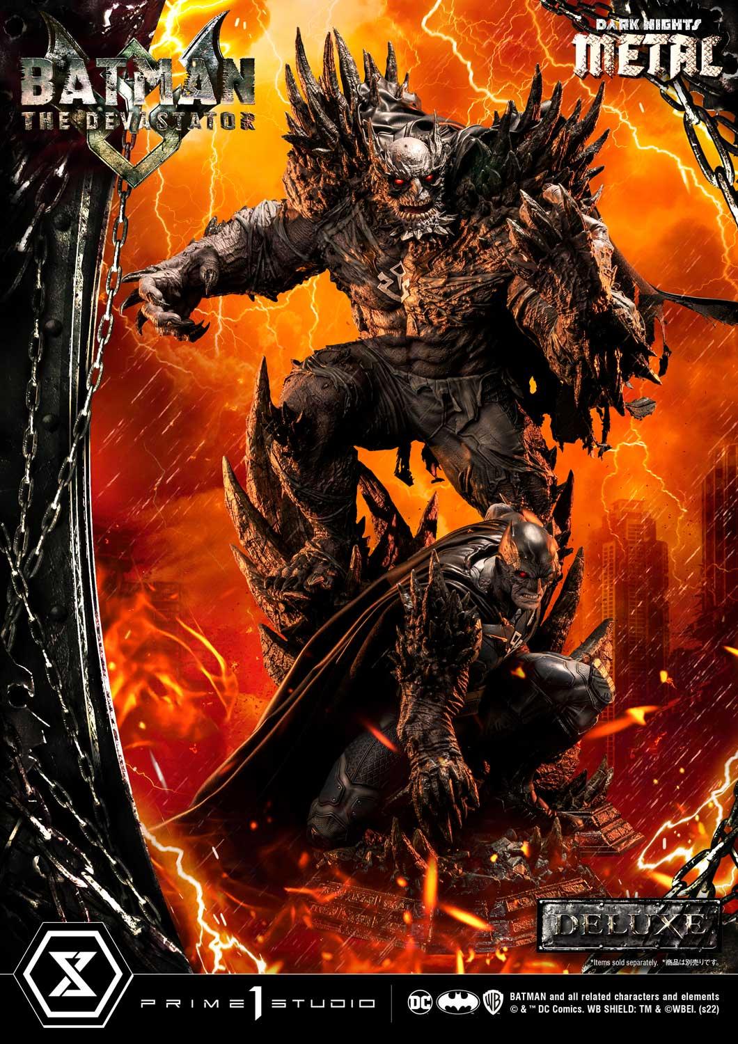 Complete your ever-growing Dark Nights: Metal statue collection with the breathtaking MMDCMT-11DX The Devastator Deluxe Version from DC Dark Nights: Metal!