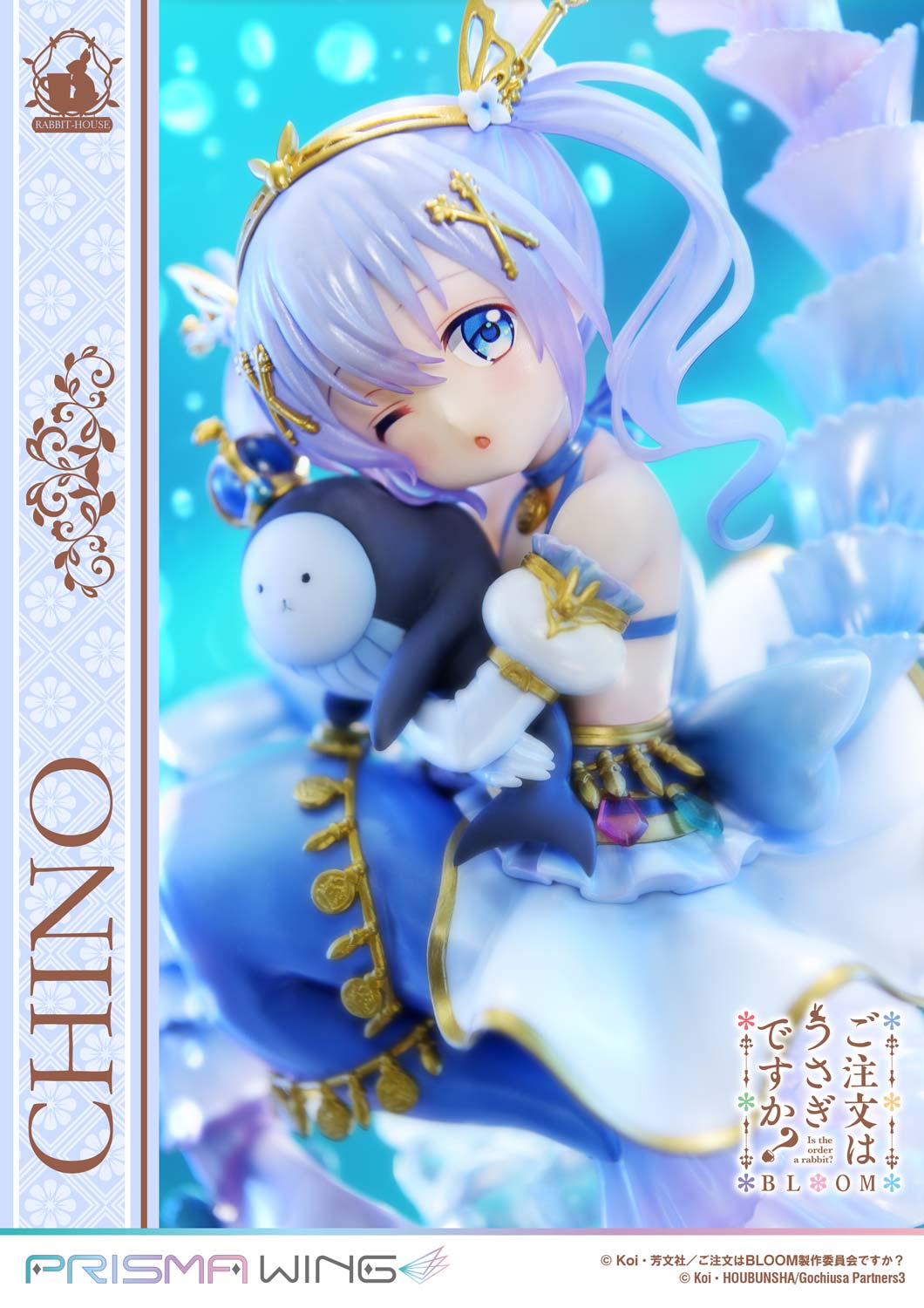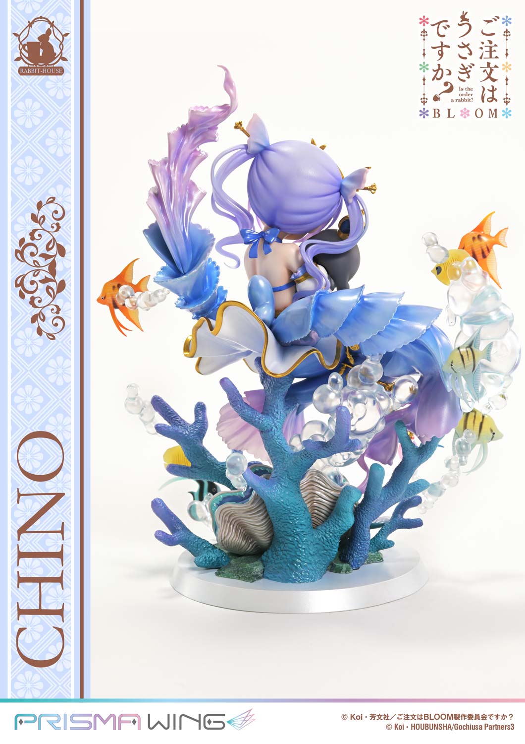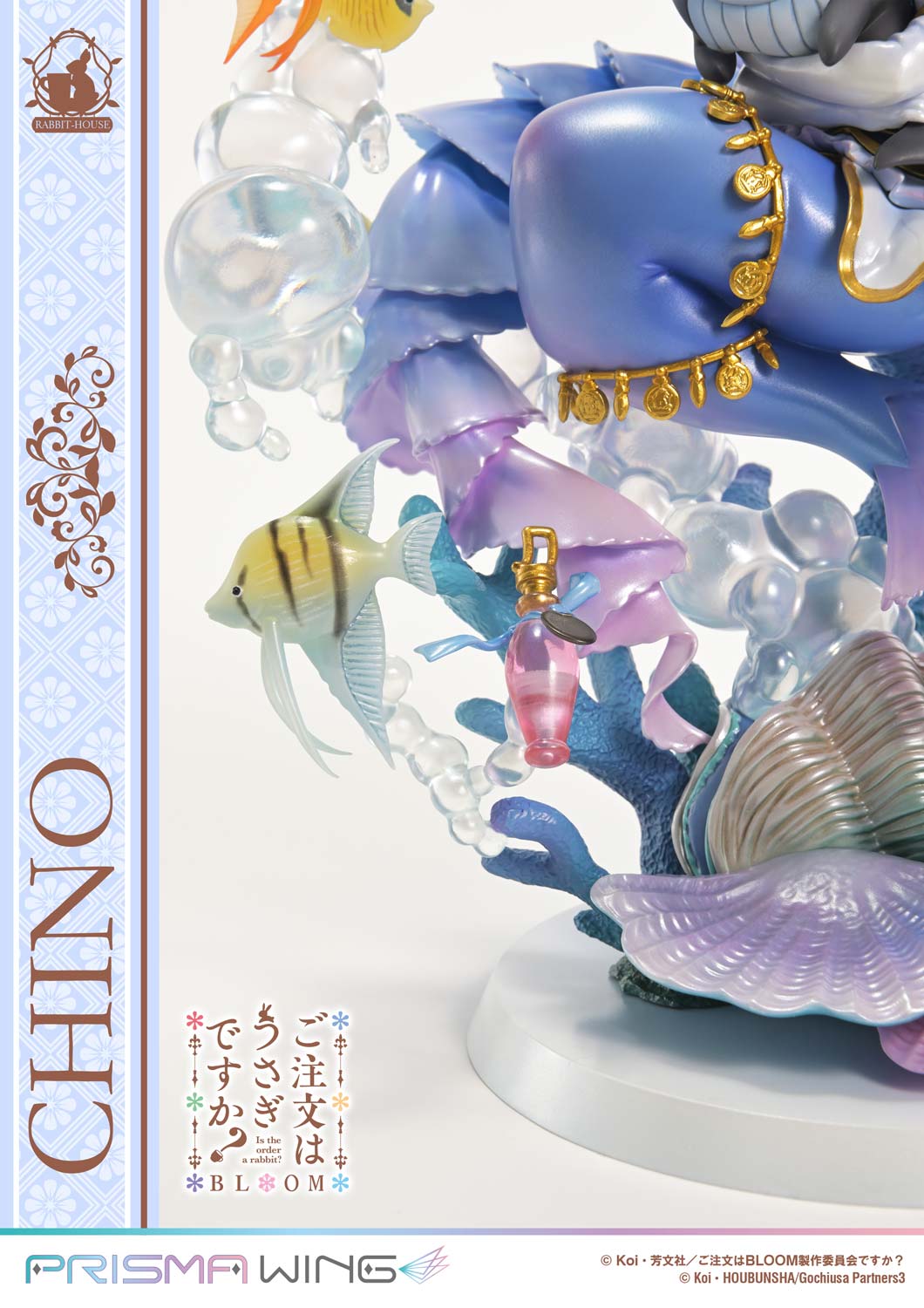 From “Is the Order a Rabbit? BLOOM,” the storybook-style illustration of “Chino,” inspired by a little mermaid, has been brought to life as a figure for the very first time. From her gentle facial expression and carefully composed pose to the vividly colored undersea world that surrounds her, every detail has been meticulously sculpted. Showcasing a fairytale-inspired look rarely seen in her usually cool demeanor, this figure presents “Chino” in full bloom of charming sweetness.