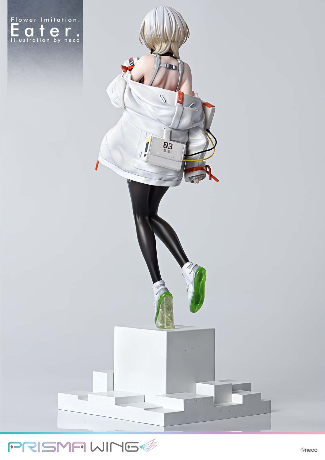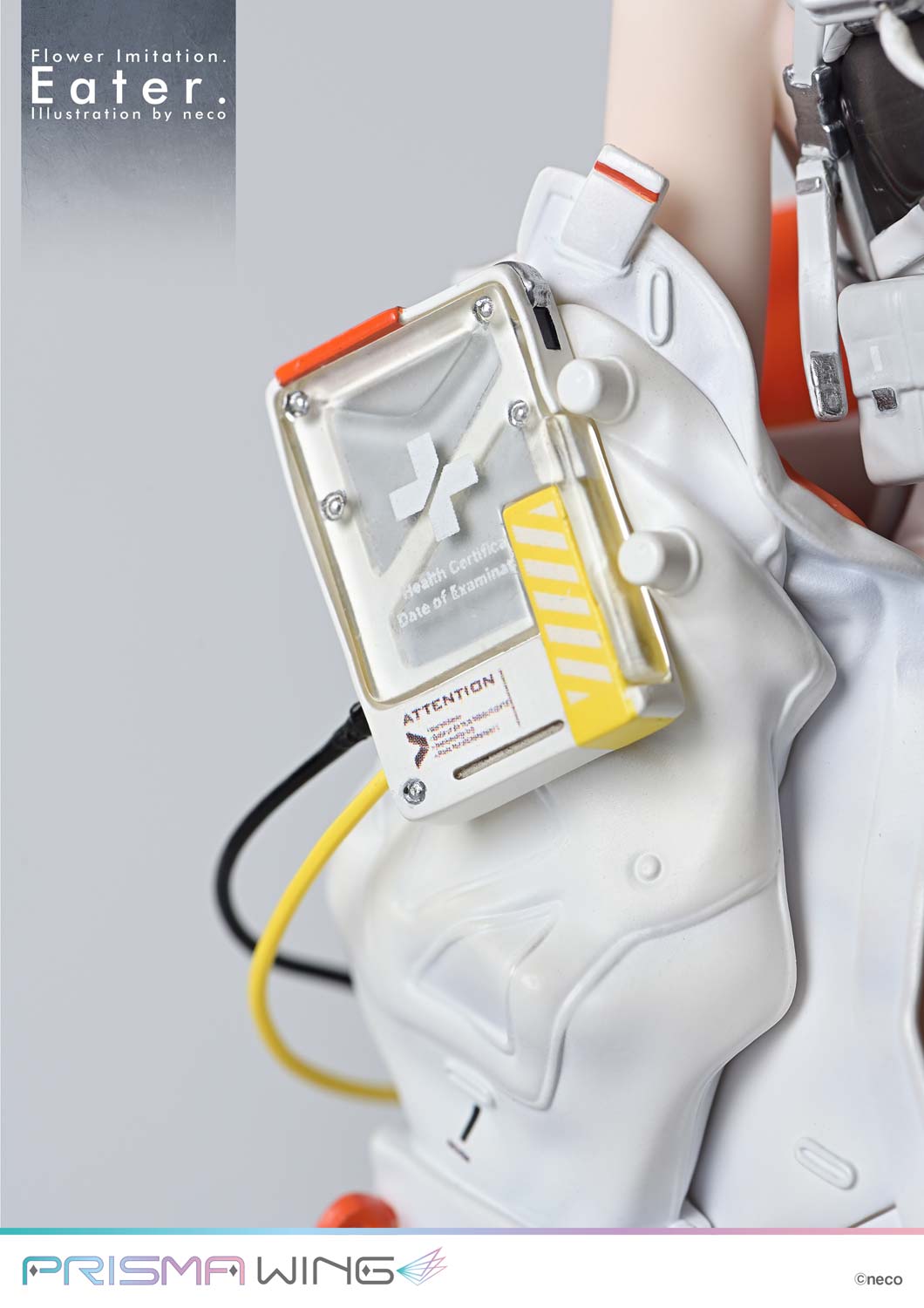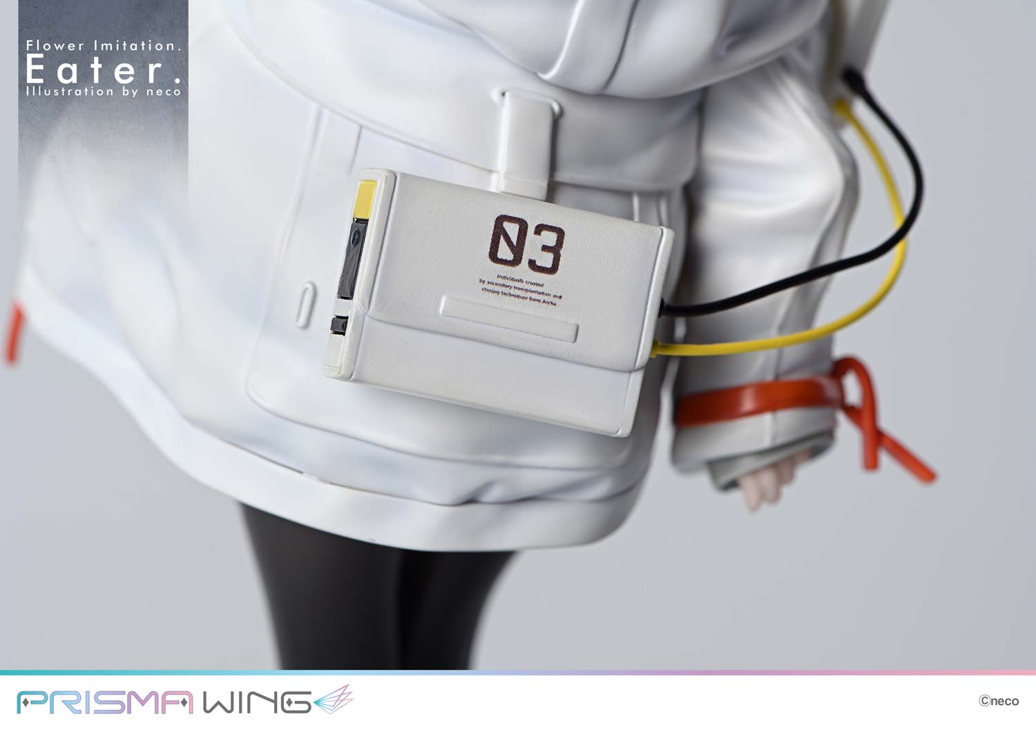 From illustrator neco comes the original artwork series "Flower Imitation.," a wordless story told through images. Its second figure, the girl "Eater.," now joins the line. A base of stacked white cubes. Lab-like transparent equipment. Behind the mask, a glimpse of white teeth and a red tongue tip. A fragile yet perilous beauty, captured in 1/7 scale, sparks your imagination.