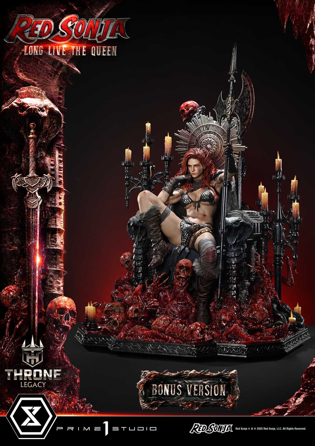 Created to commemorate the 50th anniversary of the character’s debut, this official artwork by Ian MacDonald inspired the 1/3 scale statue titled "Red Sonja: Long Live the Queen." Victorious in a bloody battle on enemy soil, the crimson-haired warrior seizes the throne with a bold pose. Her fierce yet beautiful presence has been fully realized in three dimensions.