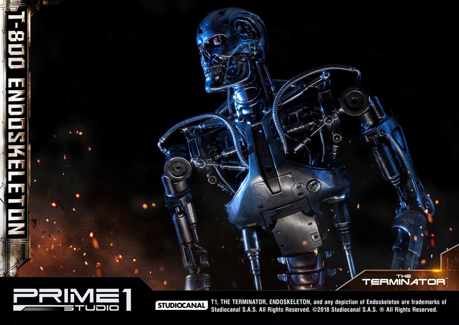 Prime 1 Studio is proud to present the 1:2 scale HDMMT1-01: T-800 Endoskeleton statue from The Terminator (Film). The Terminator is the first work in the Terminator franchise and the first film of the movie series. It stars Arnold Schwarzenegger as the Terminator, Michael Biehn as Kyle Reese and Linda Hamilton as Sarah Connor. The Cyberdyne Systems Series 800 Terminator also known as T-800, is a type of Terminator mass-produced by Skynet. It was Skynet’s first cybernetic organism, with living tissue over a hyper alloy endoskeleton. This made it Skynet’s first successful Infiltrator unit capable of infiltrating the Resistance. The T-800 Terminator, a cyborg assassin, sent back in time from 2029 to 1984 to kill Sarah Connor, whose son will one day become a savior against machines in a post-apocalyptic future. This 1:2 Scale T-800 Endoskeleton statue measures almost 41 inches tall. A must-have for all Terminator T-800 Endoskeleton fans!
