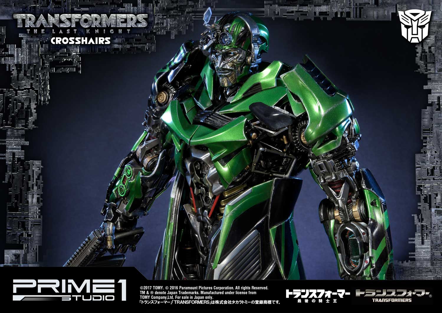 Prime 1 Studio is proud to present MMTFM-19: Crosshairs from The Transformers: The Last Knight. Crosshairs is an Autobot member and supporting character in the 2014 movie, Transformers: Age of Extinction and its sequel Transformers: The Last Knight. When the chips are down, Crosshairs is the kind of guys you would want on your team. Or you would if it wasn’t for the fact that he’s self-loving and more than a bit of a jerk. He is a paratrooper who’s a mouthful of snark with a bad attitude. He only cares about one such person: himself. Crosshairs choose to be independent so that he can avoid danger, even if his allies are in danger.